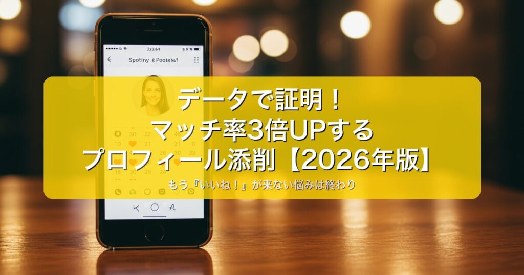 マッチングアプリ プロフィール添削【2026年版】マッチ率3倍UPの改善事例 「マッチングアプリ、登録してみたものの、なかなか『いいね!』が来ない…」 「何人かの女性とマッチはするけど、メッセージが続かない…」 このような悩み、抱えていませんか? 実...