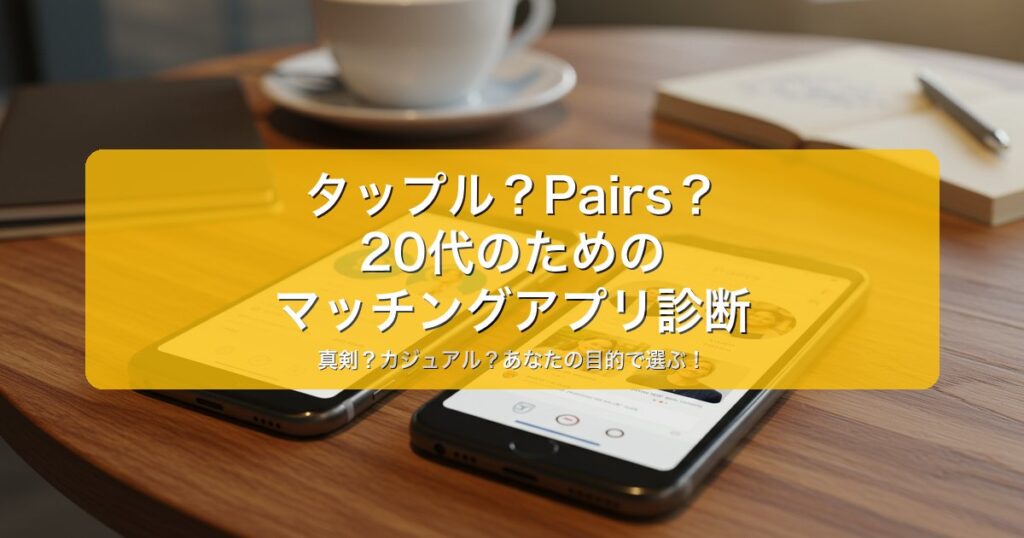 ※本ページはアフィリエイト広告を利用しています マッチングアプリ、たくさんありすぎて、結局どれを使えばいいんだろう?」——こう悩む20代の方、多いのではないでしょうか。特に「タップル」と「Pairs」は、その人気ゆえに比較検討されることも多い二大巨... -