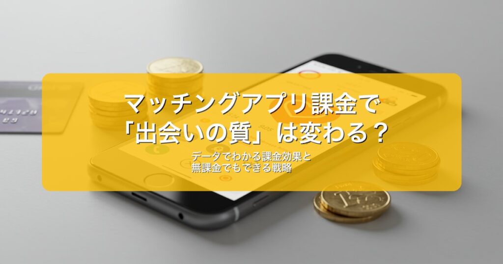 マッチングアプリ、課金すべきか迷いますよね。「無料でも出会えるならそれに越したことはないけど、有料にしたらもっと良い出会いがあるのかな?」——これ、多くのユーザーが抱く疑問です。 ✓ この記事で分かること マッチングアプリの課金が「出会いの質... -