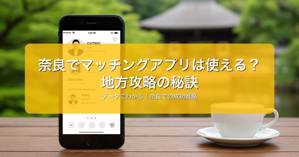 奈良でマッチングアプリは「使える」のか?地方の傾向と実態 「奈良でマッチングアプリは通用するのだろうか?」そう疑問に感じる方もいるかもしれません。 都市部と比較してユーザー数は限られますが、地方ならではの傾向を理解すれば、出会いのチャンス... -