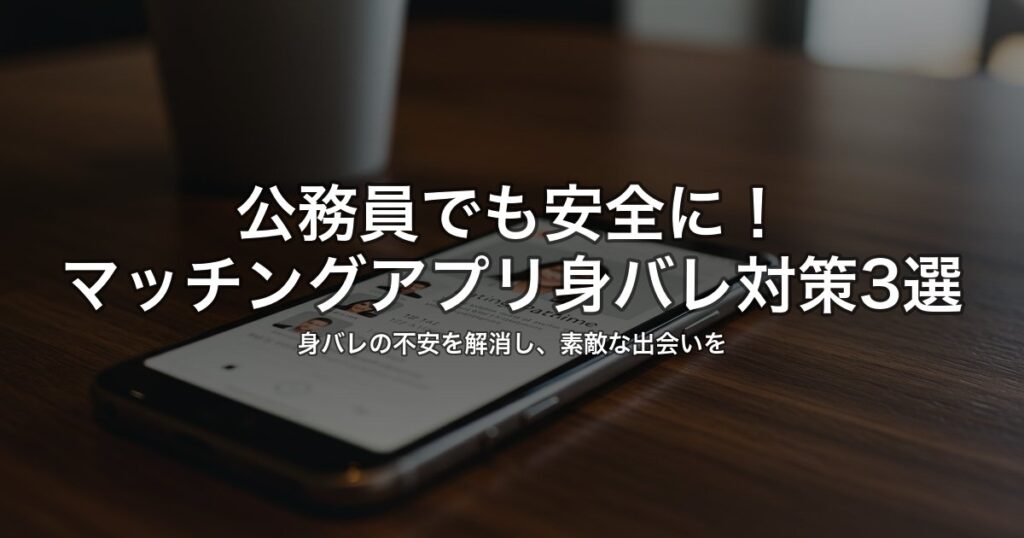 ※本ページはアフィリエイト広告を利用しています 公務員だけど、マッチングアプリを使ってみたい。でも、身バレが怖くて一歩踏み出せない…そんな悩み、ありますよね。 「結局、どのアプリがいいの?」よりも、「どうすれば安全に使えるの?」——公務員の皆... -